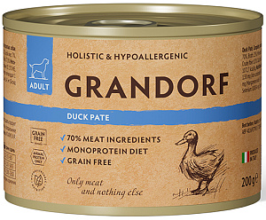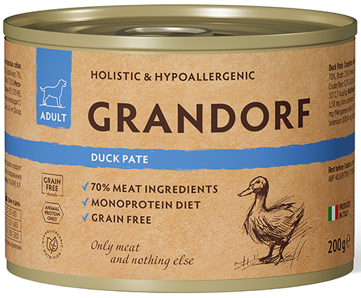Grandorf - беззерновой корм паштет из утки для собак