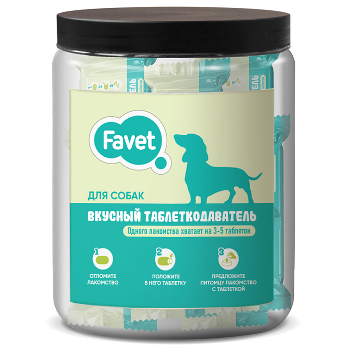 Favet - Вкусный таблеткодаватель для собак (12 шт.), ПЭТ-банка